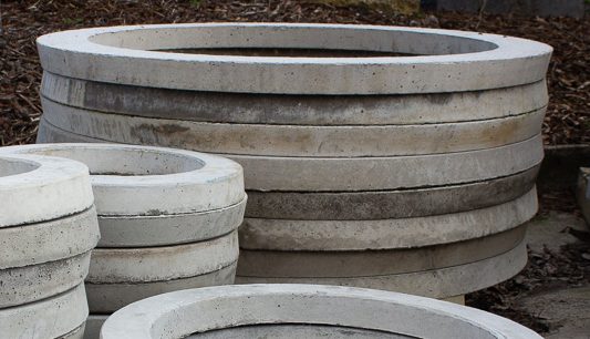 Concrete edge rings to contain a tree or garden.